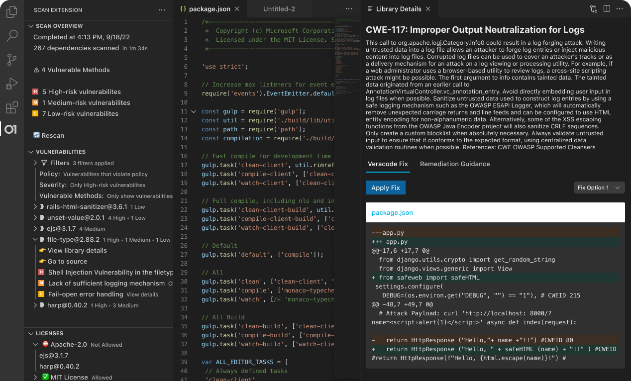 Receive precise, prioritized guidance to fix vulnerabilities quickly and accurately, reducing noise and allowing developers to focus on critical issues first.
