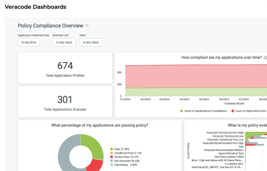 Easily identify applications meeting or failing security standards. Filter data by business units or teams to enhance accountability.